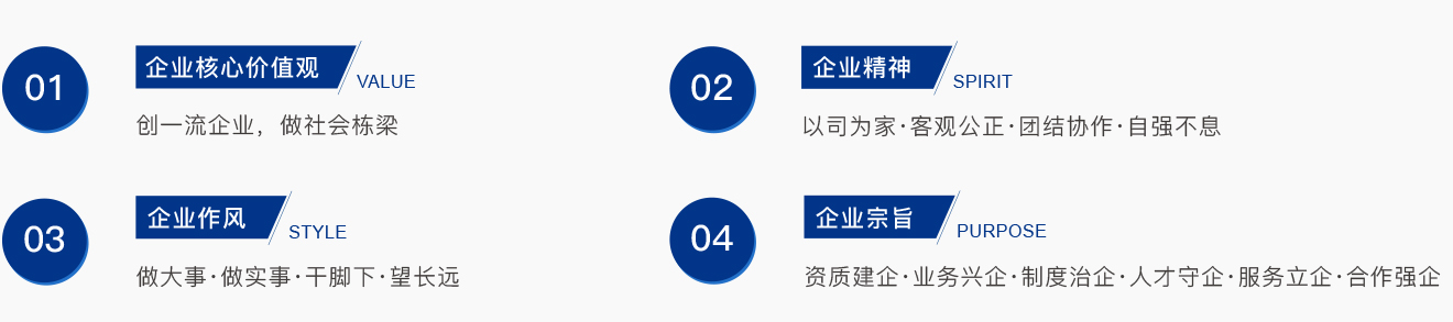 集團致力于建立一套完整的價值理念體系,規范群體行為模式,并通過各種方式,讓員工了解、掌握集團的企業愿景、企業精神 、企業作風和企業宗旨的核心內容,用以指導實際行動,凝聚力量,引導和激勵員工積極向上,使其成為戰無不勝的核心競爭力,推動企業健康穩步地發展。